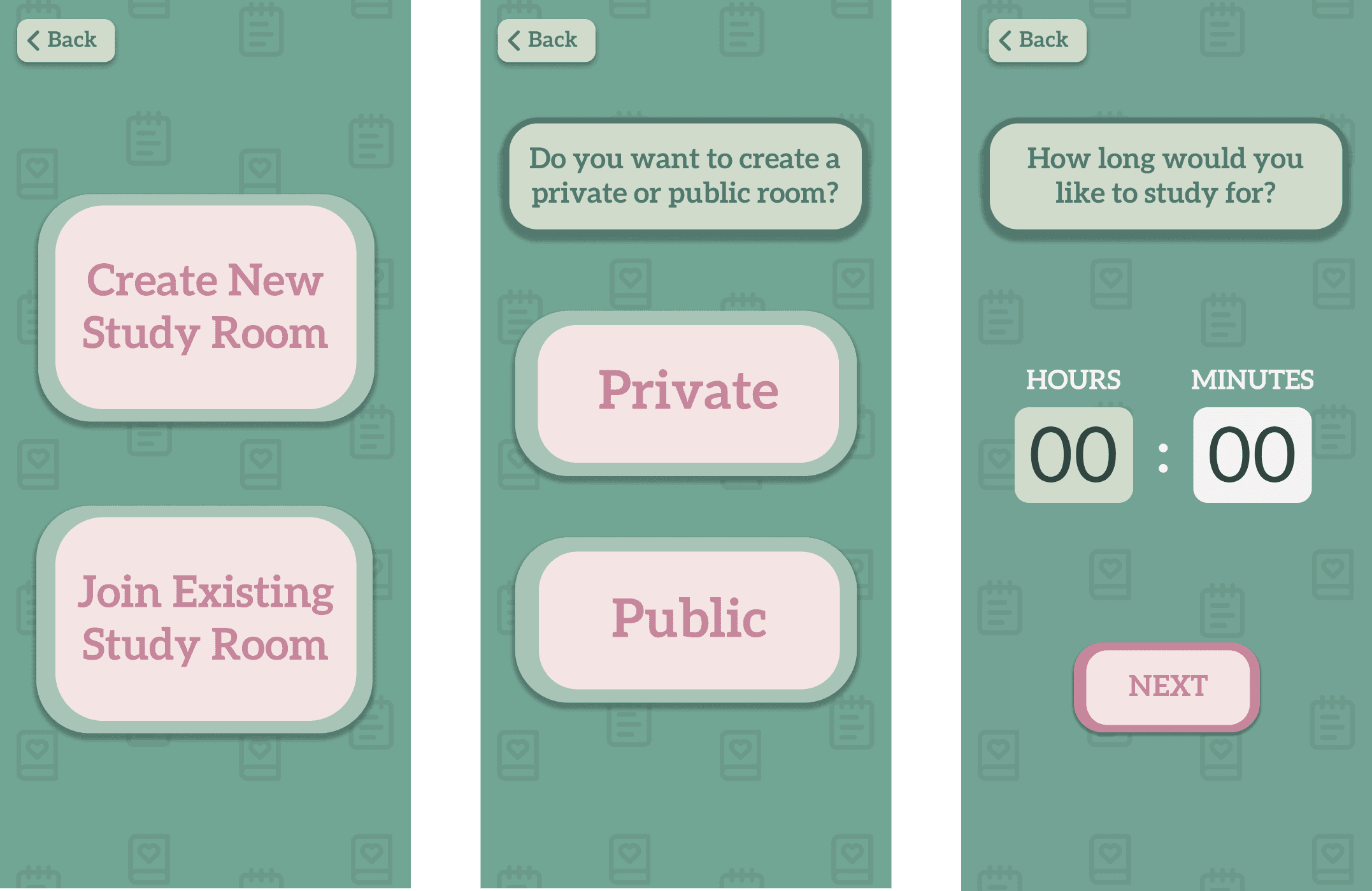 If users wish to study, they can either join or create a study session. When users create a study session, they can set the amount of time they wish to study for.